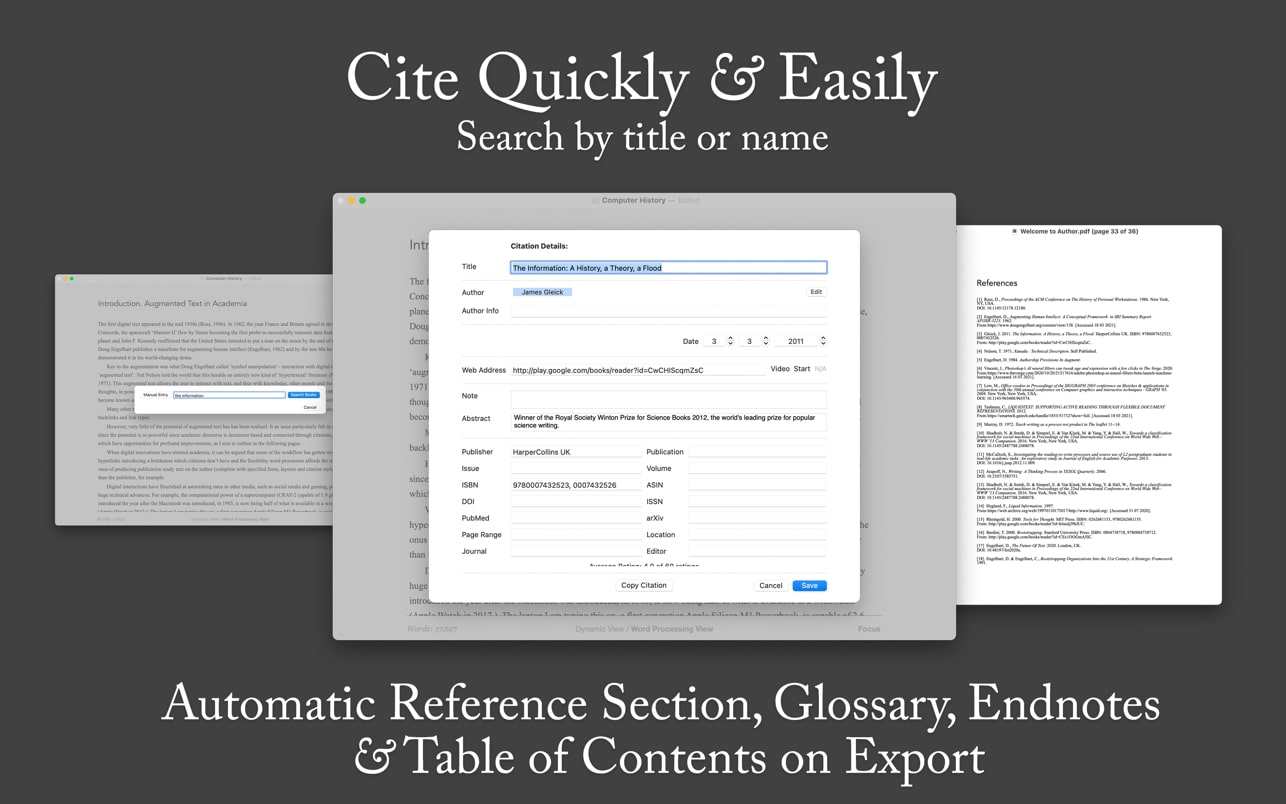 • 从配套的 Reader PDF 阅读器中复制文本,并将其作为完整的引文直接粘贴到 Author 中。