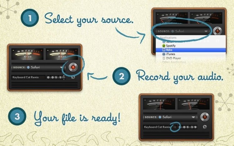 在 Piezo 中选择一个应用程序或音频设备,然后只需点击“录制”即可保存您的音频!