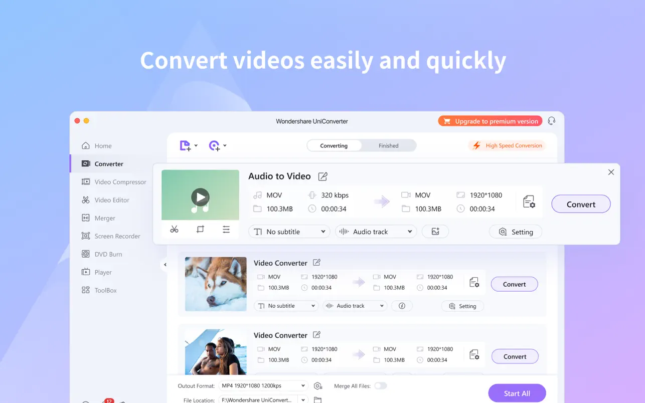 借助万兴优转独家且先进的APEXTRANS™技术,视频转换速度比其他任何转换器快30倍,且无损画质。其表现一定会让您惊叹不已!