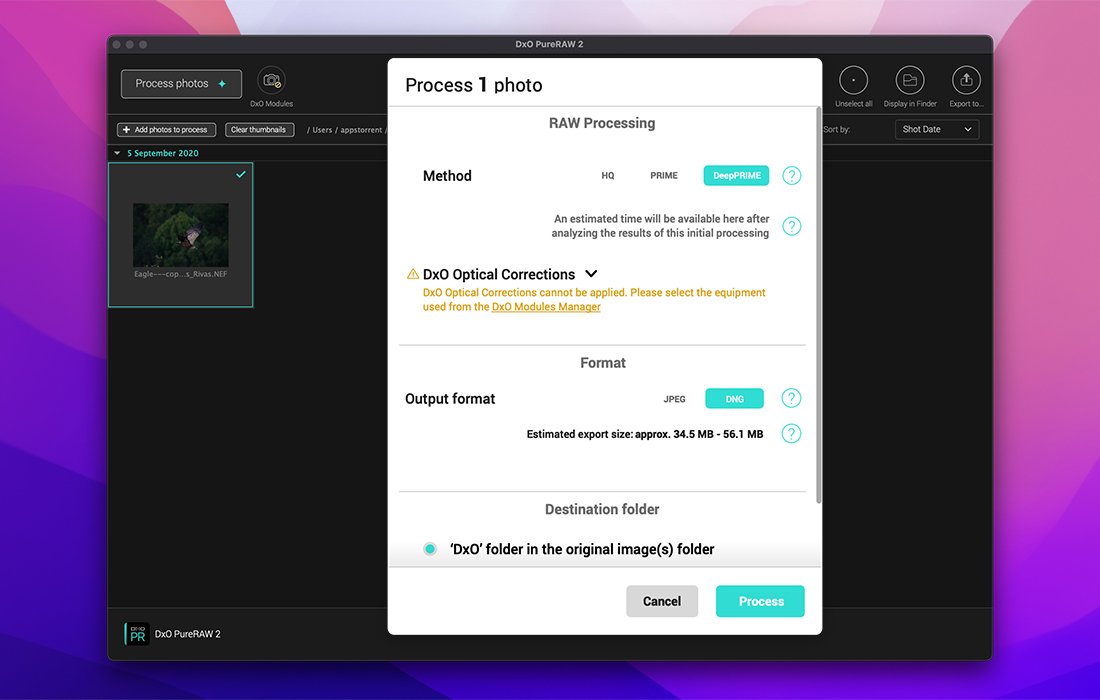在常规编辑软件之前使用DxO PureRAW,只需点击几下,即可将RAW文件转换为DNG文件——所有这些都不需要复杂的滑块或设置。