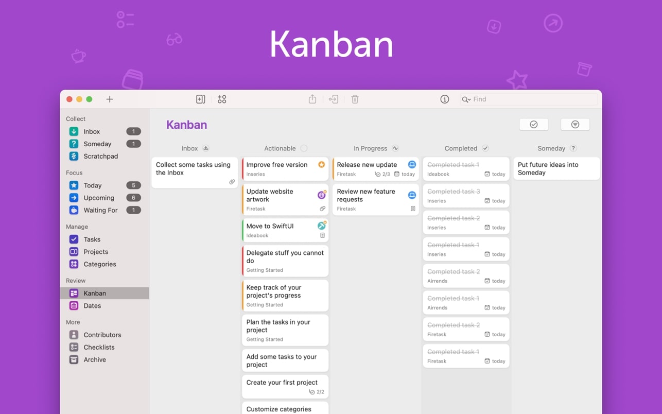 Firetask 是一款专为忙碌人士设计的看板式任务管理应用。它将看板和 GTD(Getting Things Done,高效工作法)独特地结合在一起,帮助您从记录想法、管理个人事务到组织和专注于最重要的任务。