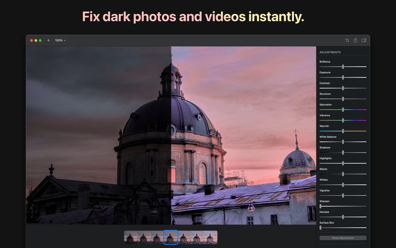 Brightly Pro 的计算摄影引擎将计算机视觉科学(关于人眼如何看待光线、颜色和对比度)与摄影艺术相结合,以和谐地修复照片。
