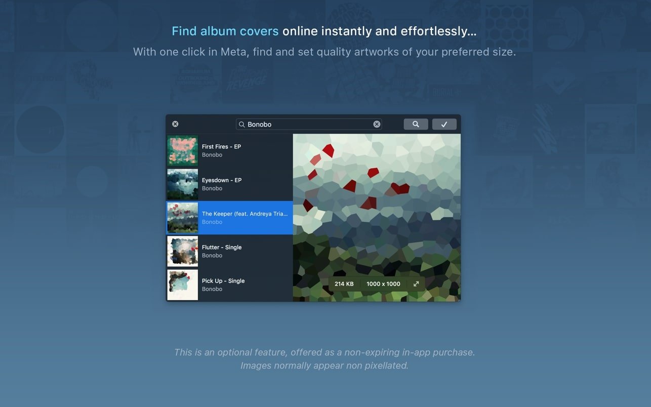 «Meta»是一款综合性应用程序,可帮助您管理您的音乐收藏。借助«Meta»,您可以轻松编辑音乐文件的标签,例如歌曲的艺术家、专辑、插图等。