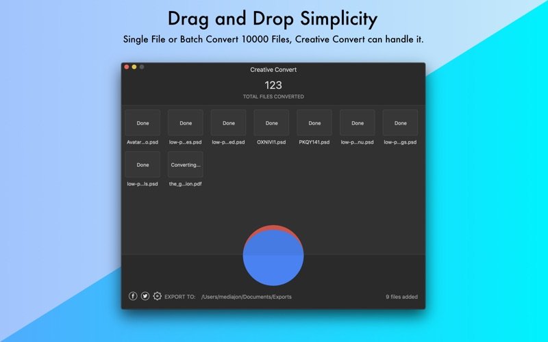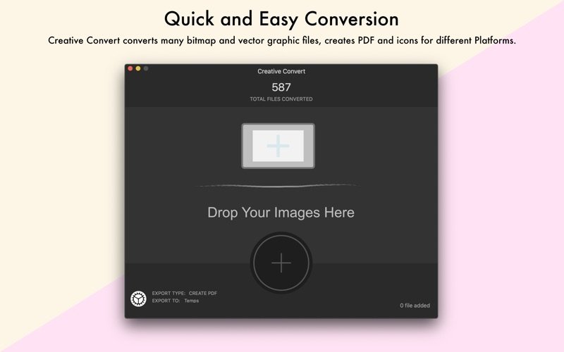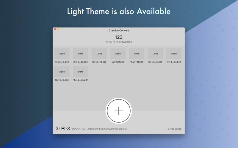 Creative Convert 允许在 macOS 上将单个或多个 PSD、Ai、EPS 和/或 PDF 文件转换为其他文件格式。它简单而美观。