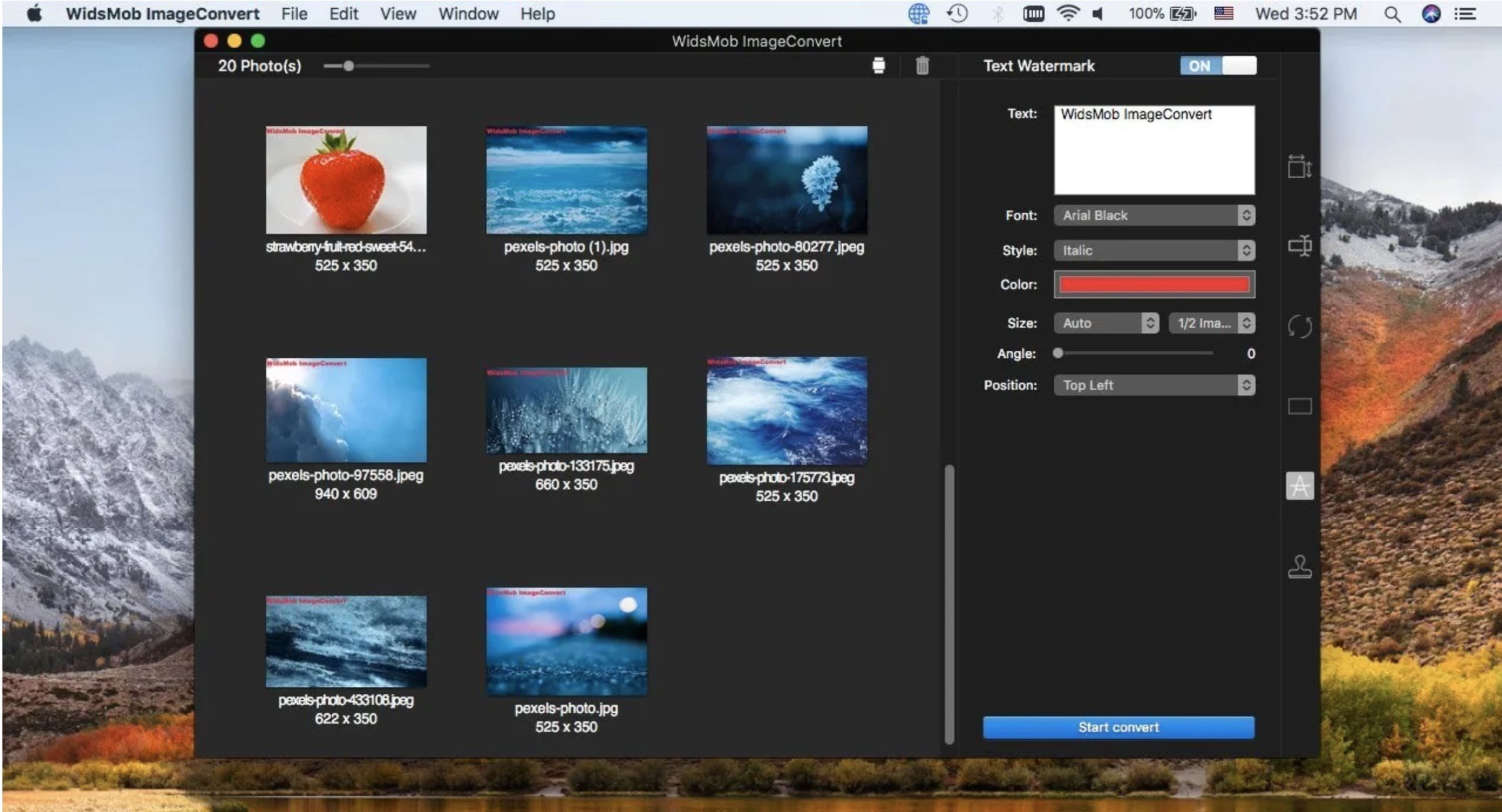 软件不仅支持添加文字和图片水印,还允许您批量自定义水印的字体、样式、颜色、不透明度、大小、角度、位置等。您可以即时预览所有照片上的效果,以获得最佳结果。