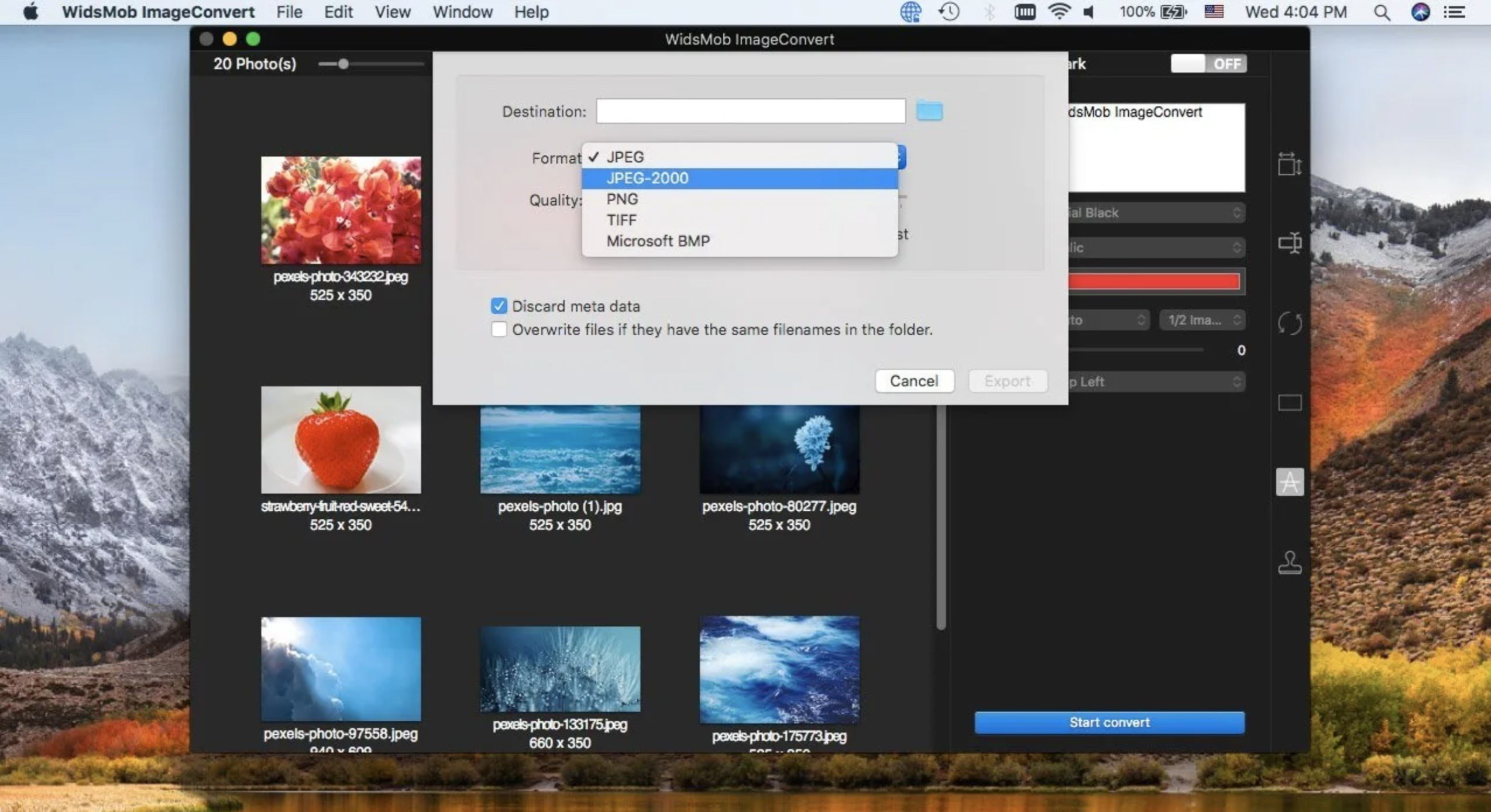 WidsMob ImageConvert 是一款支持批量转换 RAW 格式图片的软件。无论是单反相机拍摄的 RAW 文件,还是其他混合格式的图片,您都可以将它们转换为 JPEG、JPEG 2000、PNG、TIFF、BMP 等多种格式。