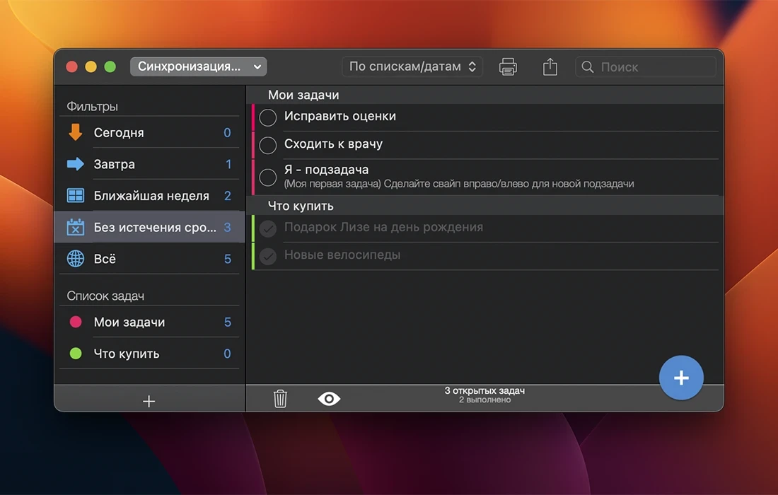 • 在 Mac、iPhone 和 iPad 设备之间同步任务。