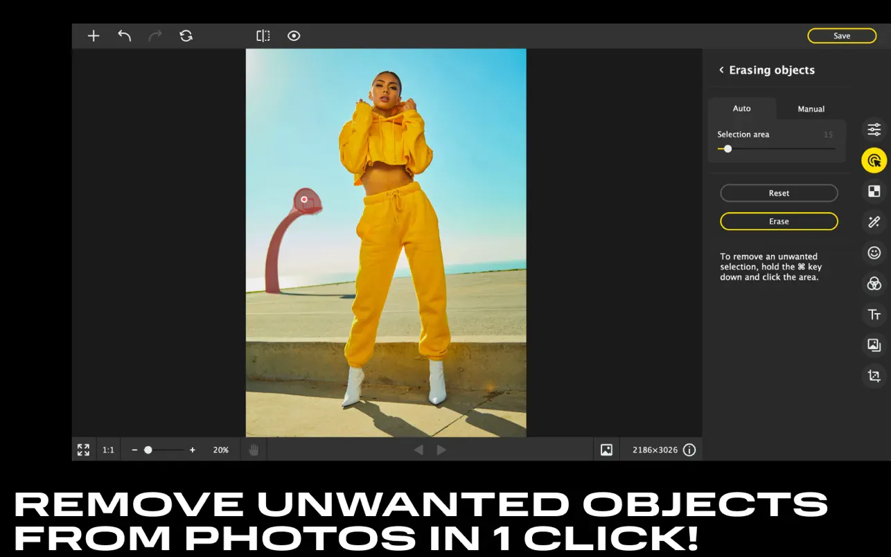无论是垃圾、文字还是路人,都可以轻松地从照片中移除所有多余的物体,不留痕迹。