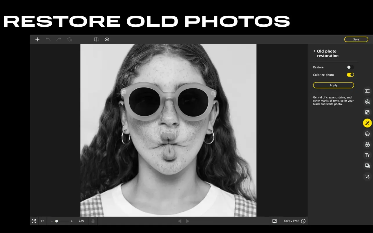 这款适用于Mac的照片编辑软件可去除旧照片扫描件中的灰尘、裂缝和斑点。如果照片泛黄,程序会为其恢复原始色彩,甚至还能自动为黑白照片上色。