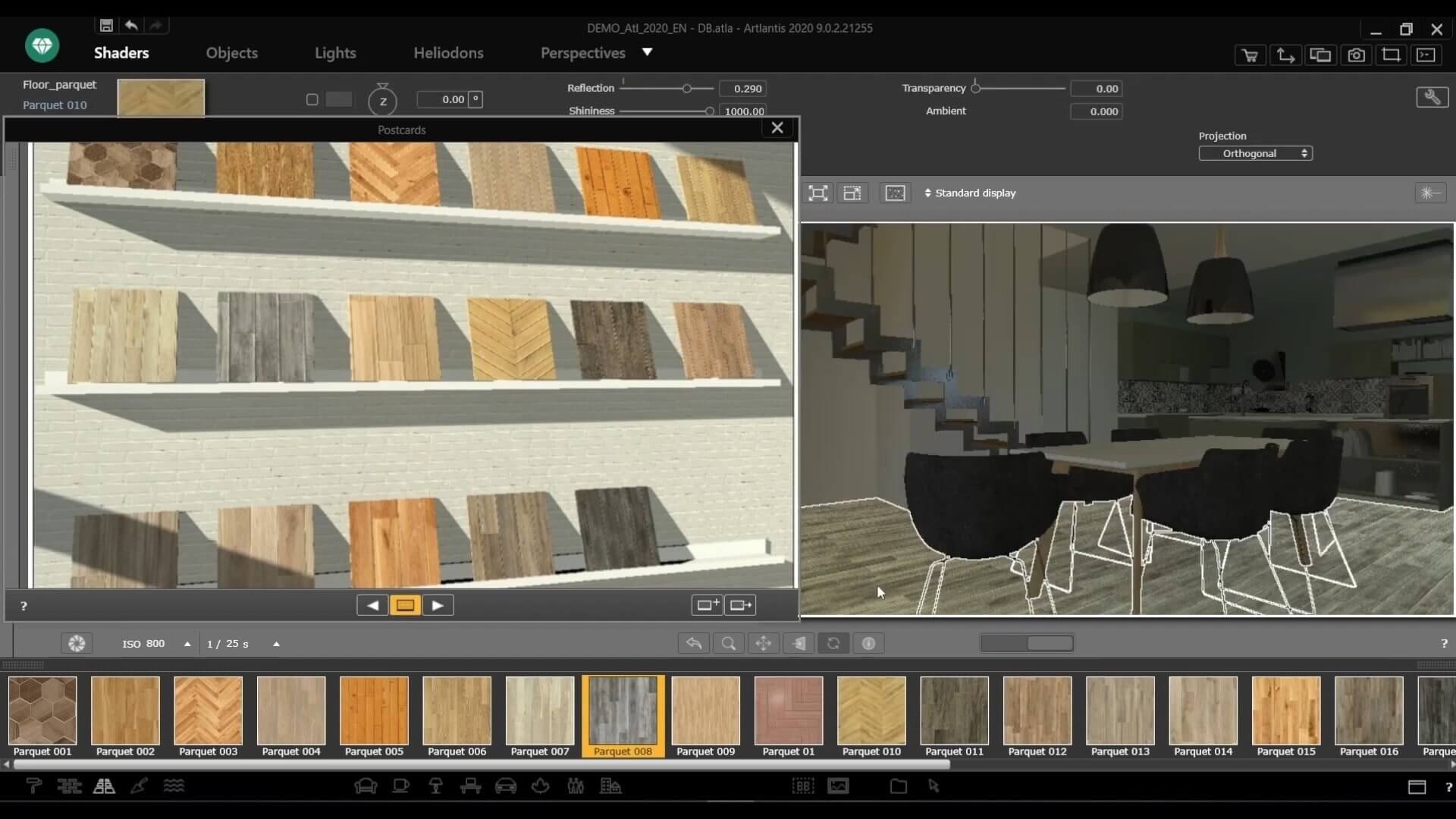 新版本的 Artlantis 提供了用于自动创建纹理的新工具。现在,着色器获得了新的属性:镜面反射、光泽、模糊效果、位图叠加调整……所有这些都是为了提高纹理的质量。此功能主要面向经验丰富的程序用户——现在他们可以通过程序界面独立设置着色器库。