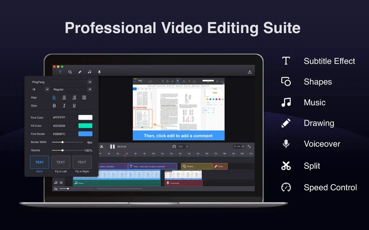 Filmage Screen 完全无广告,让您在工作中不受干扰。它可能是您在 Mac 上能找到的最好、最全面的屏幕录制、视频编辑和视频转换应用。