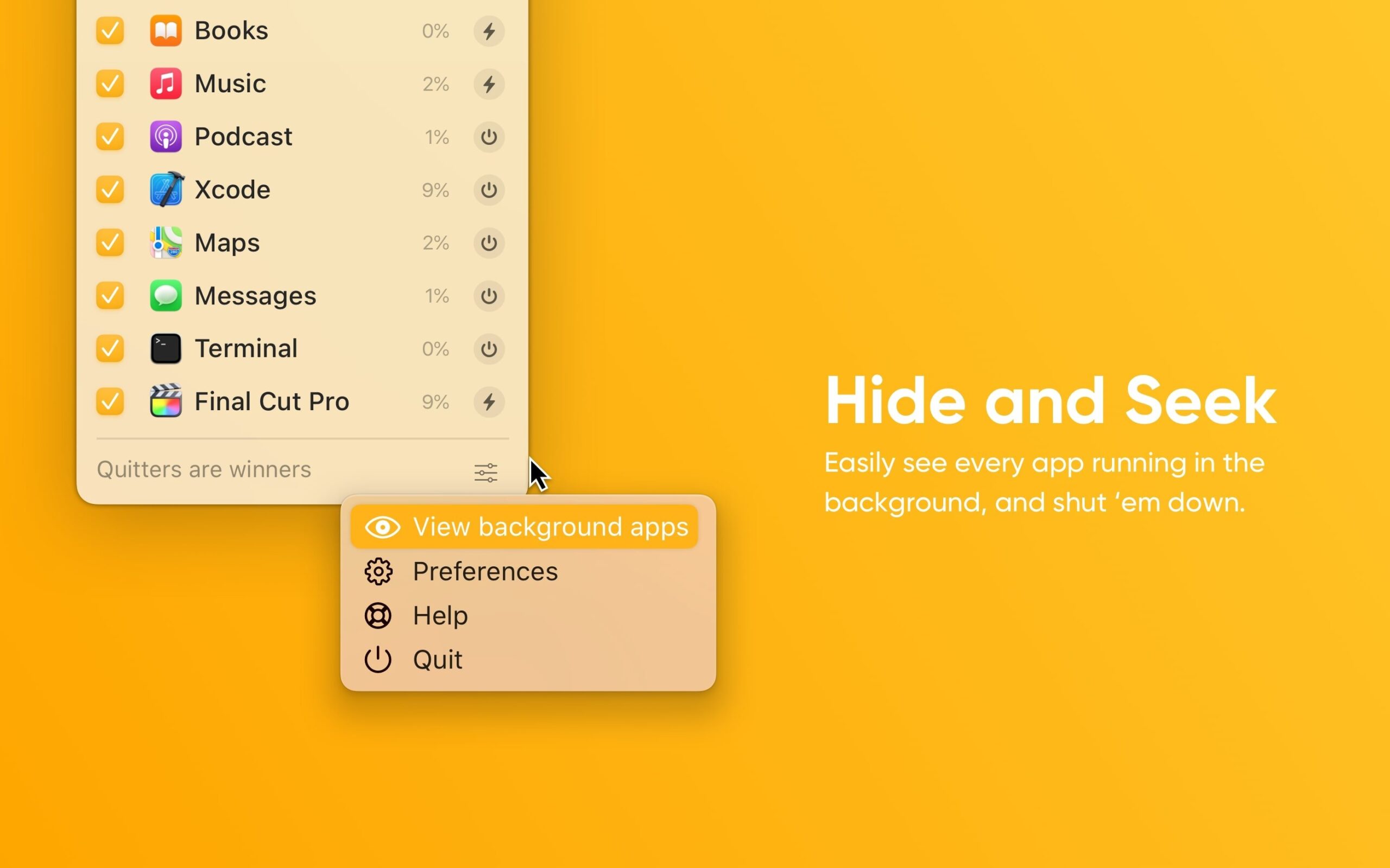 使用 Quit All 的后台应用查看功能,您可以决定是否要关闭它们或让它们继续运行。菜单栏中的 Quit All 助手可以轻松处理此任务。