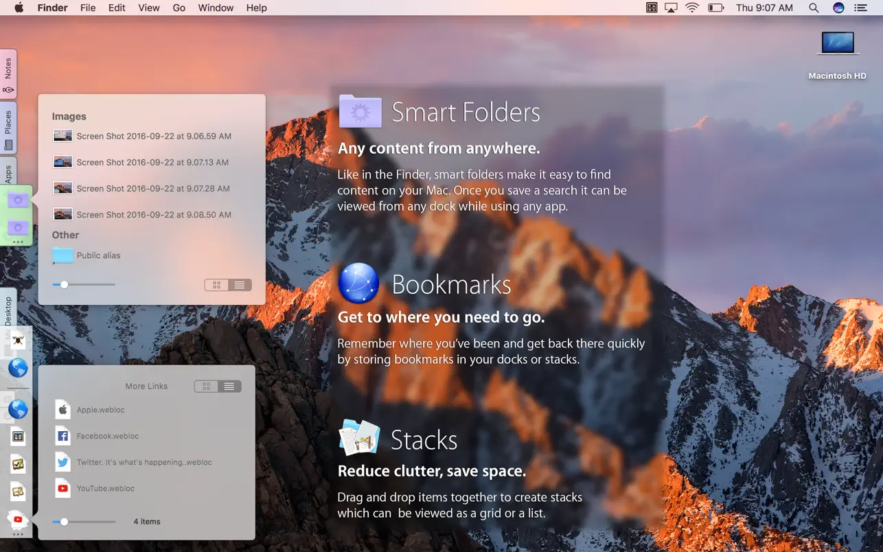 - 堆栈(Stacks):将任意数量的文件分组,并通过弹出窗口进行浏览。