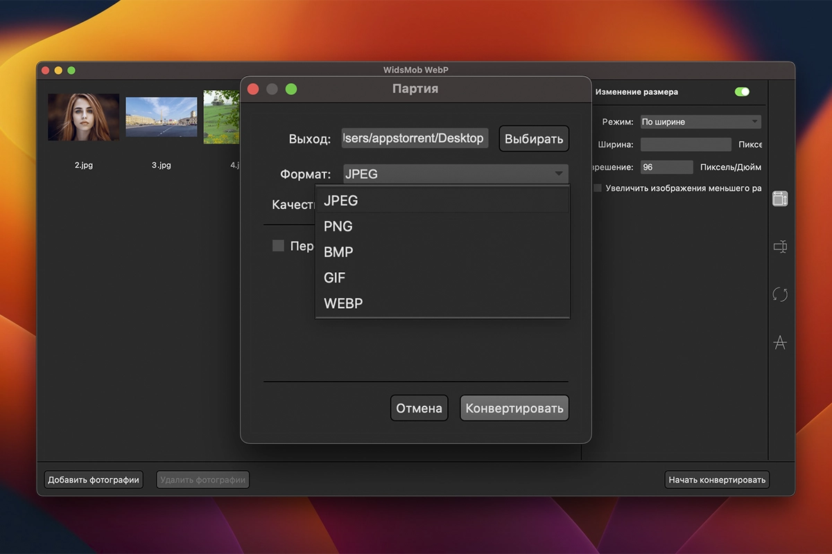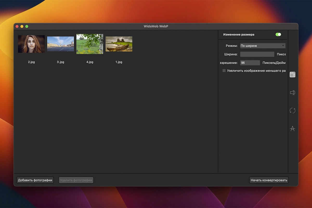WidsMob WebP是一款多功能的WebP文件管理器,提供多种实用功能。它不仅能让您轻松地查看、调整大小和旋转WebP文件,还能为照片添加水印,并支持将HEIC图像转换为GIF、JPEG、PNG、BMP和TIFF等多种格式。