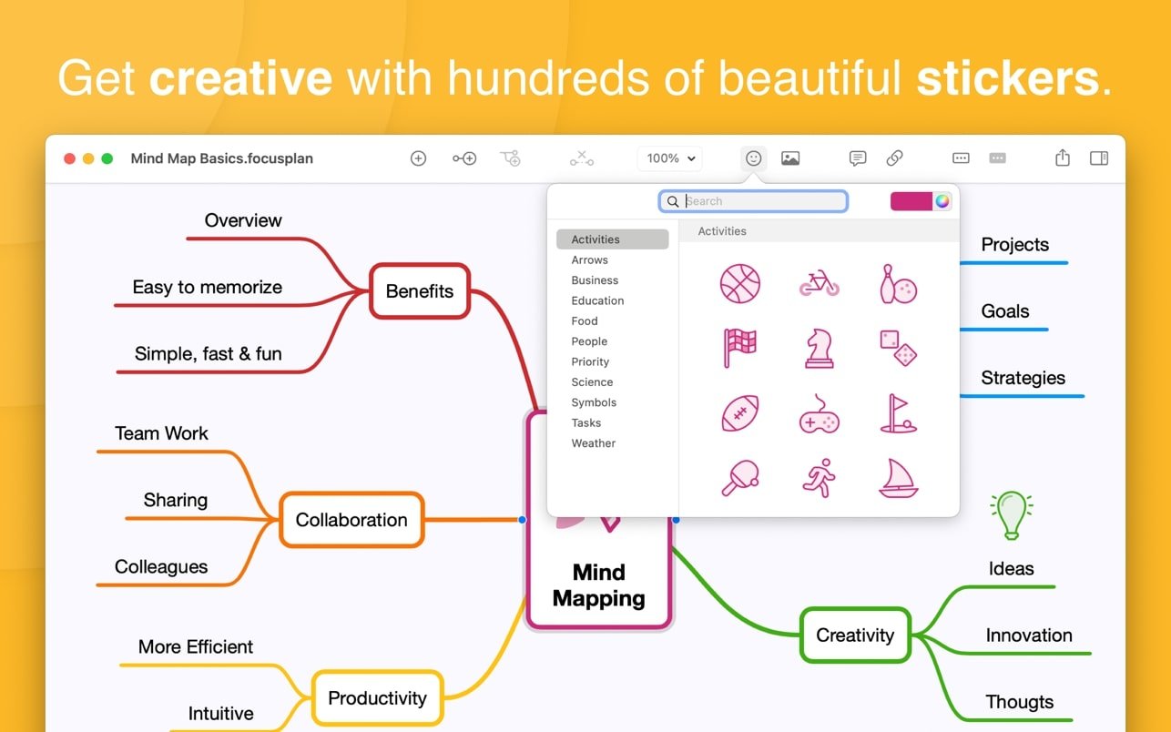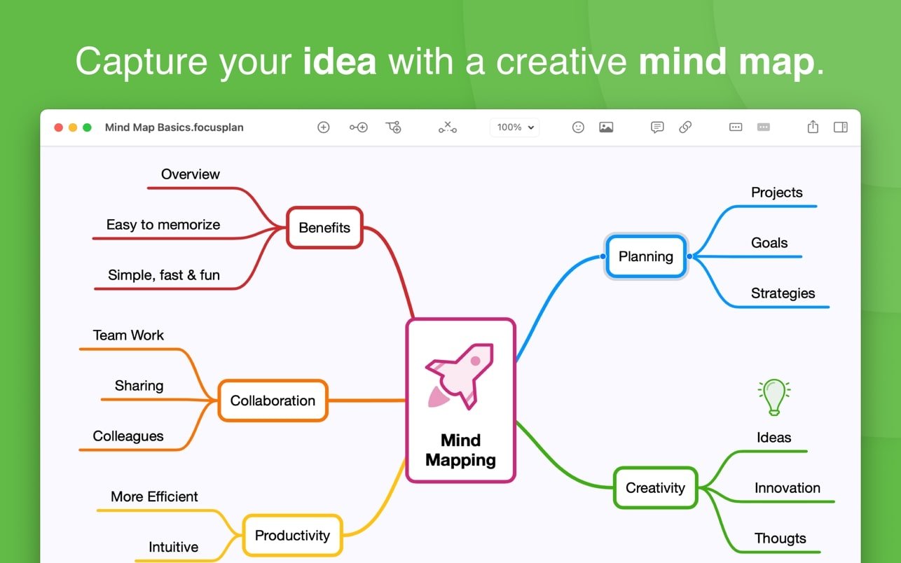 Focusplan 是一款功能强大、灵活且全面的思维导图和头脑风暴应用程序,适用于所有人。它能够帮助你捕捉、发展和分享你的概念想法,并将其转化为令人惊叹的思维导图。