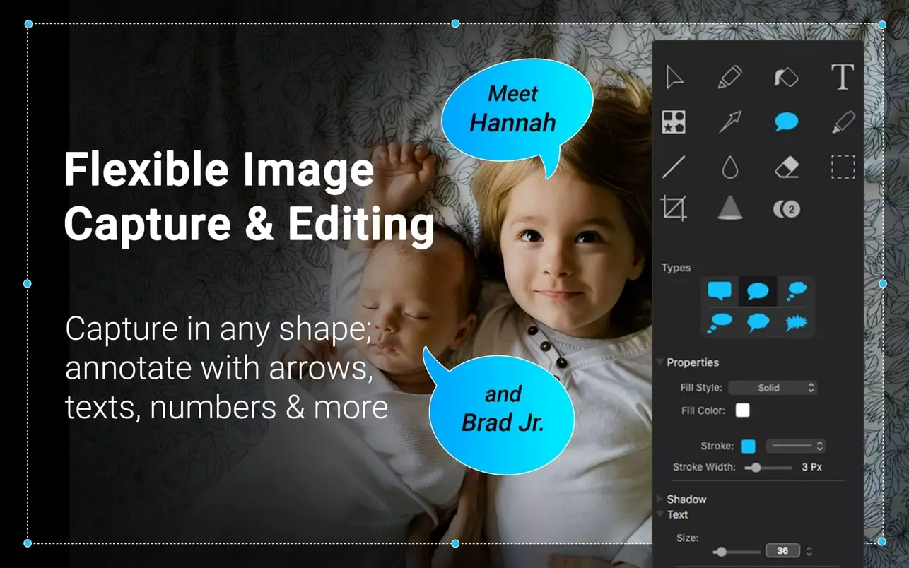 Capto 同样可以在 Mac 上快速轻松地制作截图。您可以快速截取屏幕,根据需要进行编辑、裁剪,在图像上添加文字,并即时上传到与 Capto 直接关联的多个社交媒体平台之一。