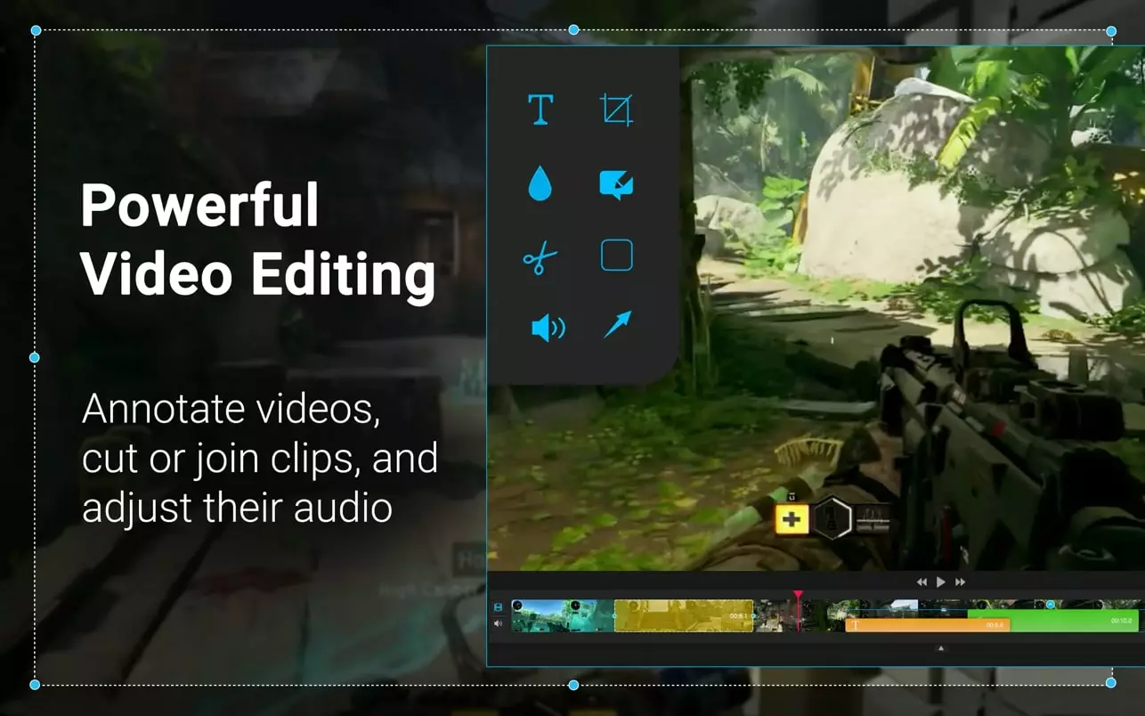 Capto 是 Mac 上最简单的屏幕录制工具之一。如果您正在制作教程,或者需要创建带有注释和画外音的清晰屏幕录像,那么 Capto 便是您的不二之选。Capto 提供了多种实用的录制功能,例如在录制过程中编辑视频、添加音轨、剪切或缩短视频以便与其他片段合并。此外,您还可以进行截图和编辑。实际上,它是一款集屏幕捕捉和快速编辑于一体的多功能工具。
