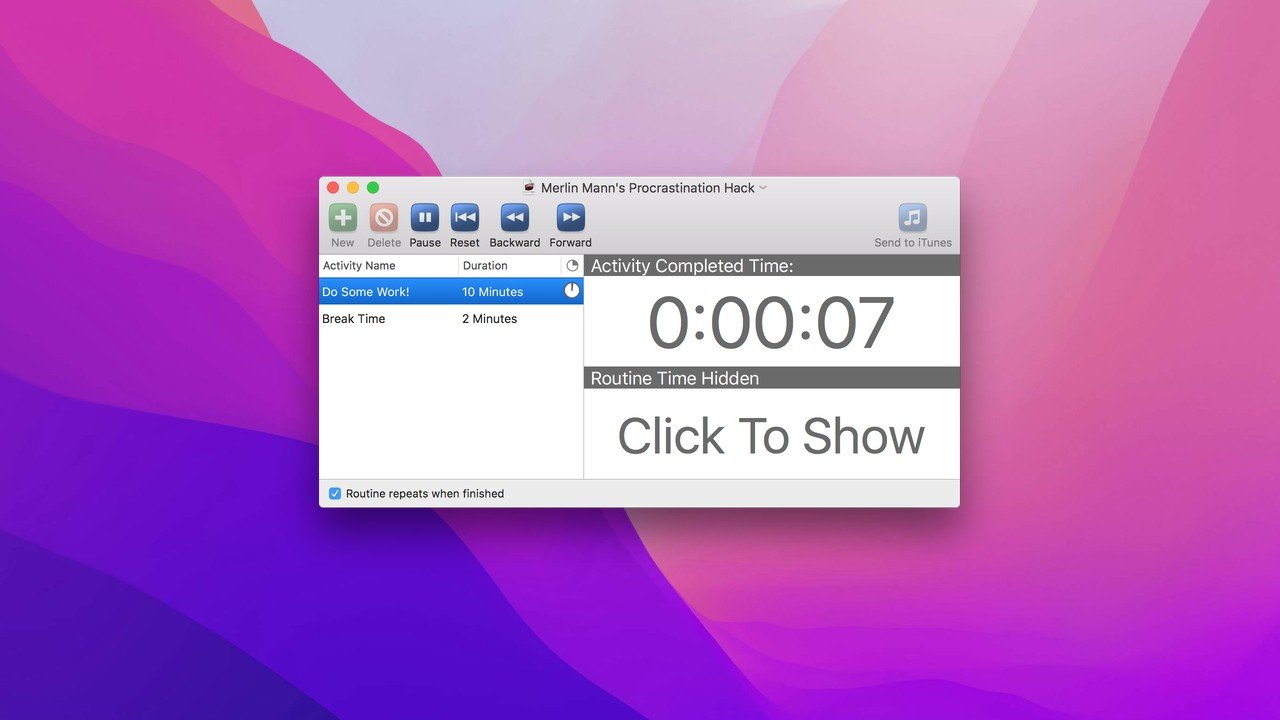 FlexTime是一款通用计时器,适用于重复性任务。您可以自定义时间表,让您的Mac来提醒您。您甚至可以将时间表发送到iTunes中,以便随时随地获取提示。