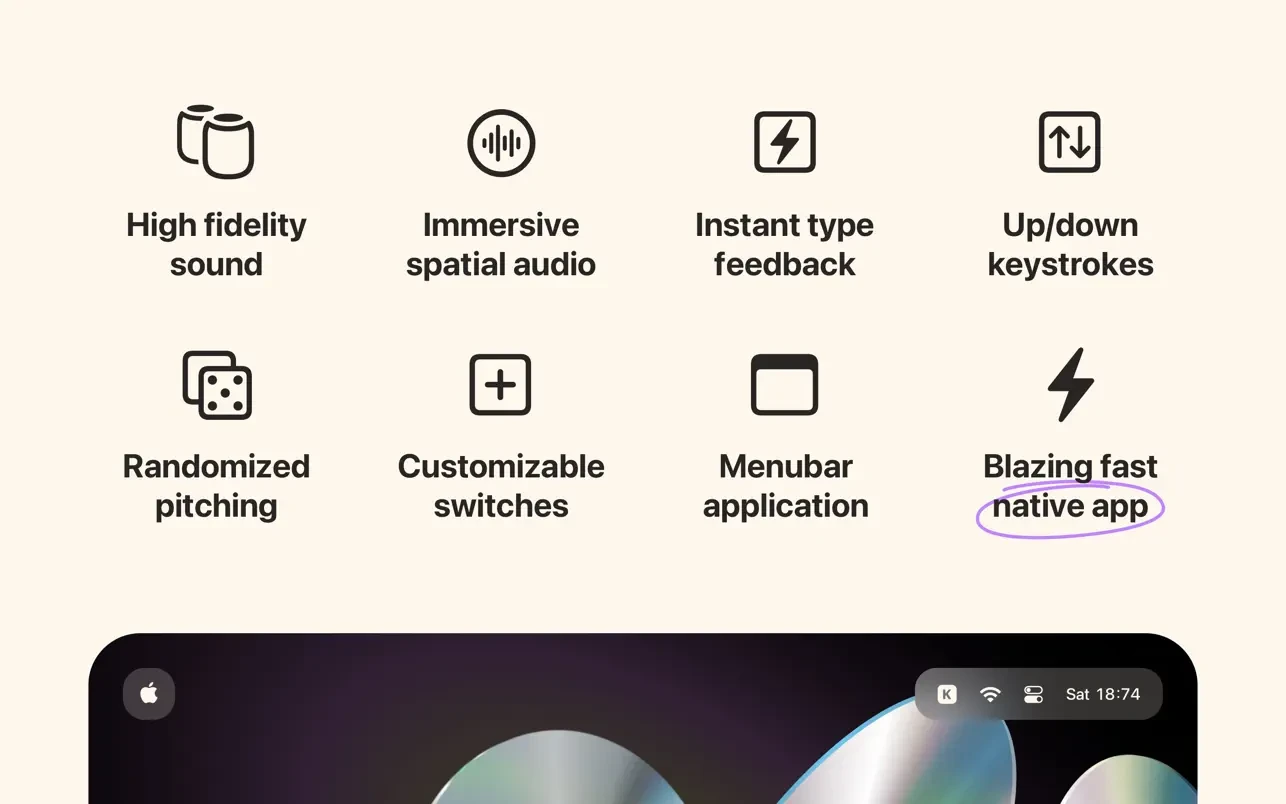 Klack 是一款专为 Mac 设计的应用程序,旨在模拟机械键盘的打字体验。它会在你每次敲击键盘时,通过电脑扬声器实时播放对应的按键音效。