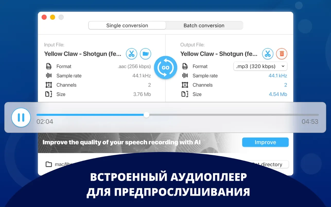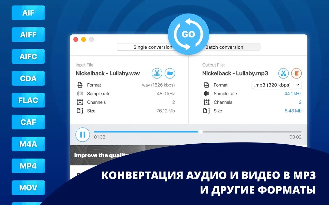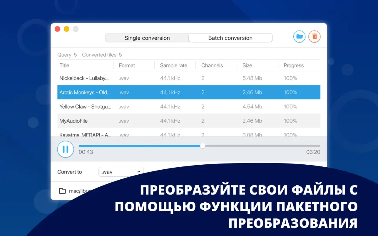 - **试听**已加载或已转换的音频文件。