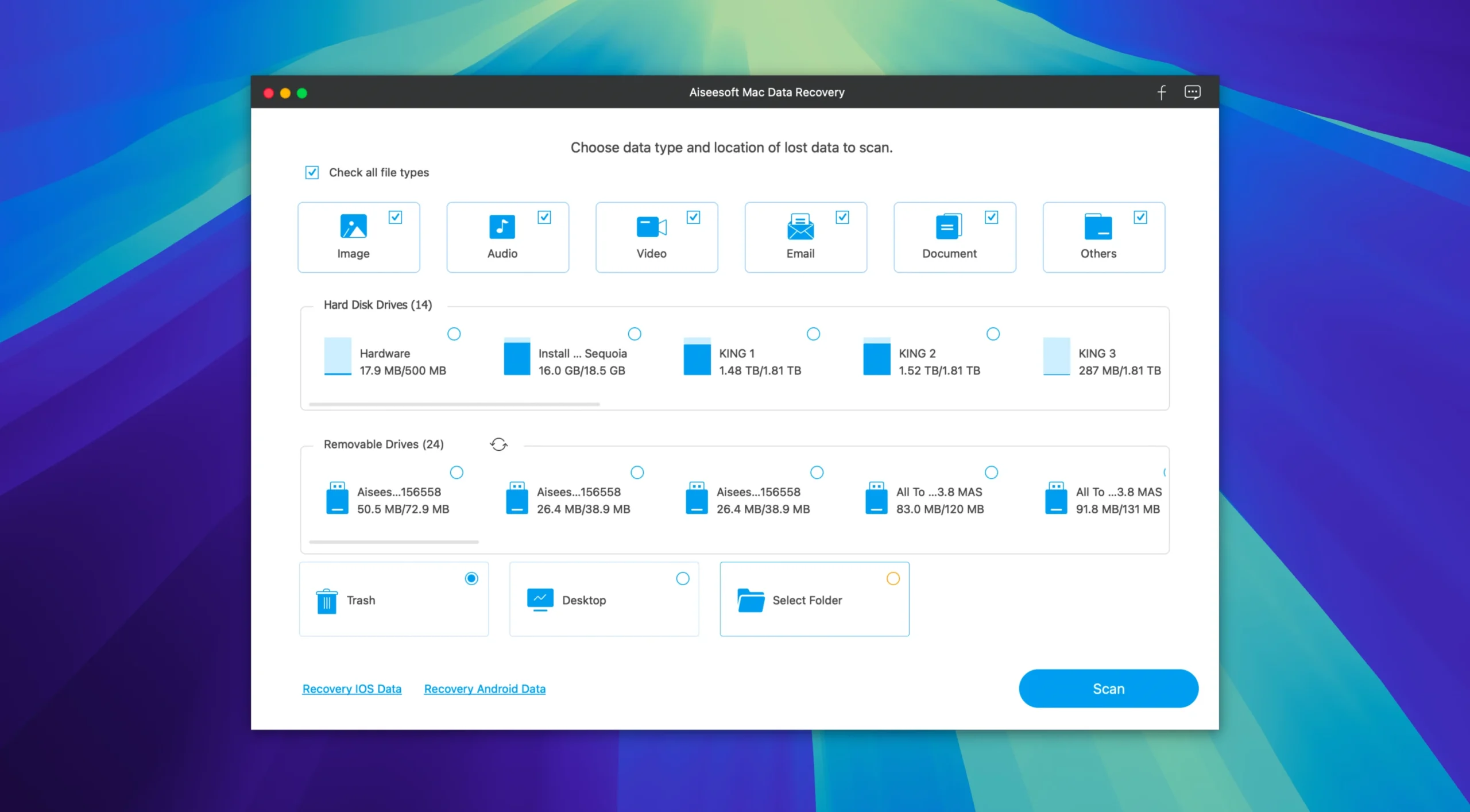 Aiseesoft Data Recovery 是一款专为 Mac 用户设计的工具,用于扫描并恢复丢失或删除的文件,包括文档、图片、音频、视频和电子邮件等。