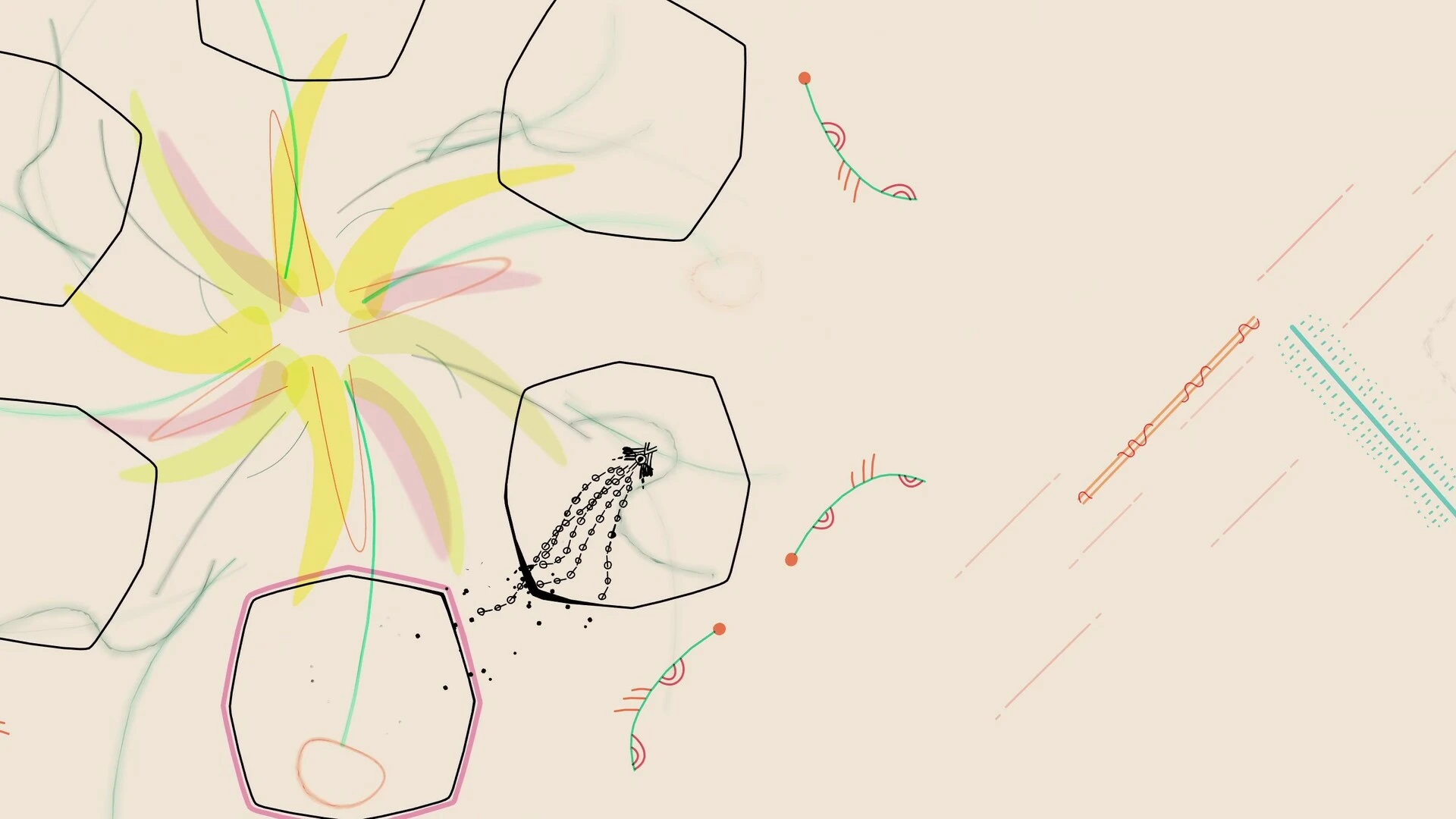在交织的空间中探索不同的移动方式。你可以在气流中滑翔,冲刺穿过发光的元素,或者在安全的泡泡中稍作休憩。