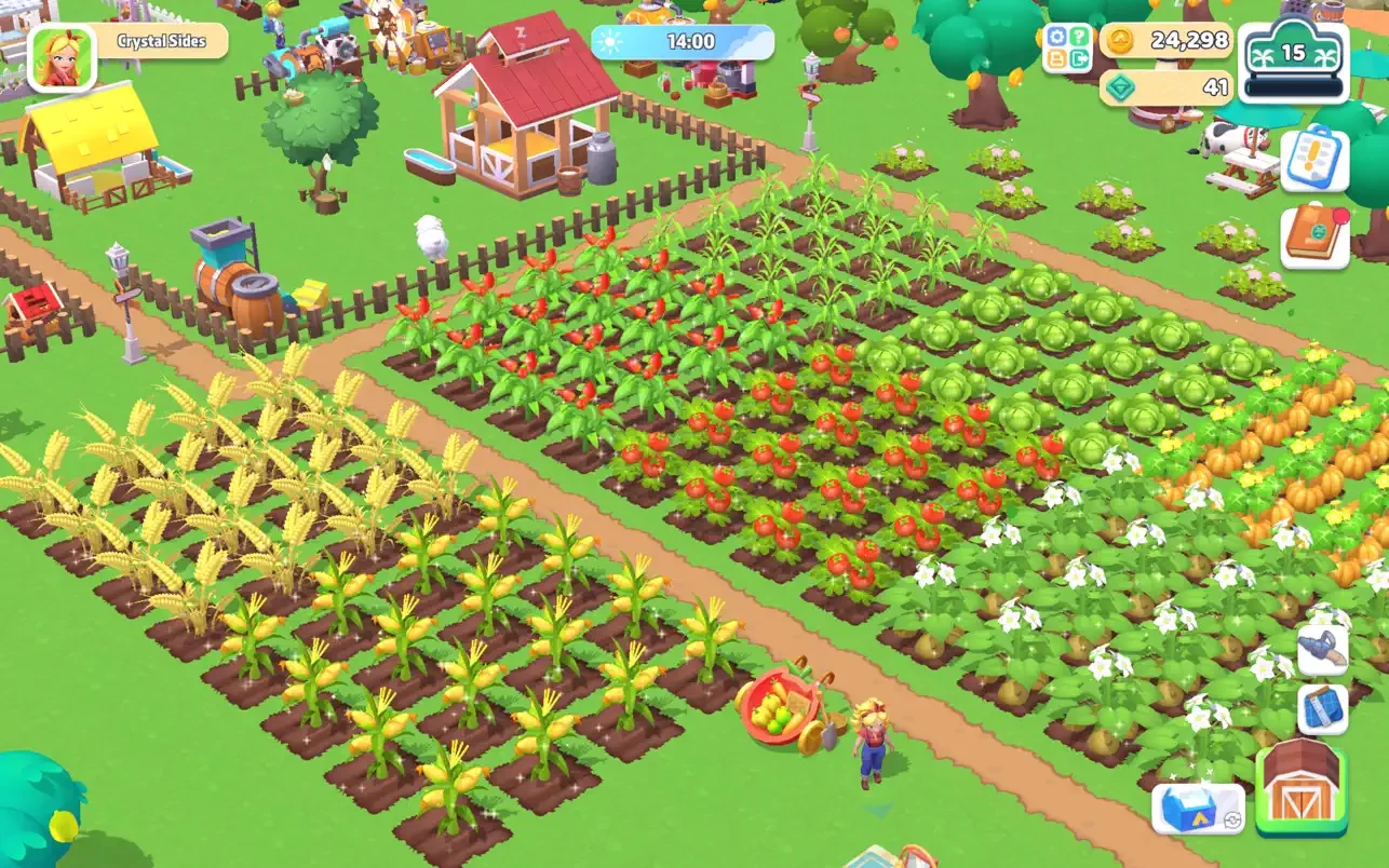 - 使用贴纸为谷仓、房屋等农场建筑重新上色。