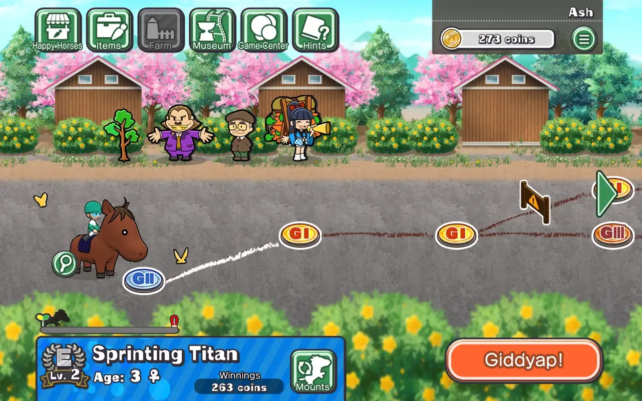 你在赛道上的位置会影响纸牌游戏的难度。在比赛中,你还可以收集赛道上的特殊卡片。这些卡片会带来各种优势:提升赛马等级、学习新技能或增强比赛表现。但要小心:如果你一直在外道奔跑,你的赛马会消耗宝贵的体力!