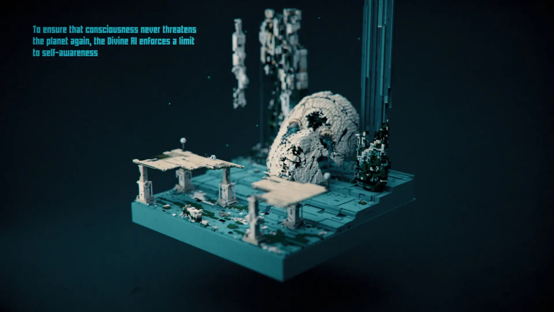 这些机器人生活在一个与人类文明最后时期几乎没有变化的世界里。他们与数十亿细菌、植物、昆虫和真菌共存,但没有更复杂的生物体。为了确保意识不再对地球造成威胁,“AI神明”设定了一个自我意识的阈值。任何超过这个阈值的生命都将被销毁。这个协议被称为“灵魂容忍度”。