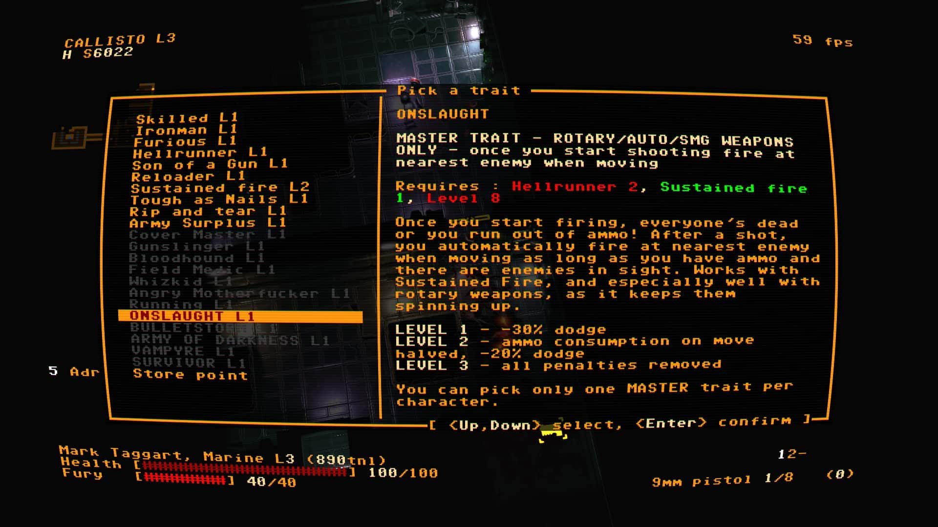 所有地点都是随机生成的,因此每一次游戏体验都是独一无二的。玩家的弹药有限,必须在地图上寻找,或从敌人的尸体上收集补给、急救包和新武器。一开始只能携带一把武器,但之后最多可以携带四把。关卡的目标是找到可用的电梯并前往下一层。一旦进入下一层,就无法返回,如果死亡,则必须从该层的开头重新开始。游戏完全支持键盘或手柄操作,无需使用鼠标。