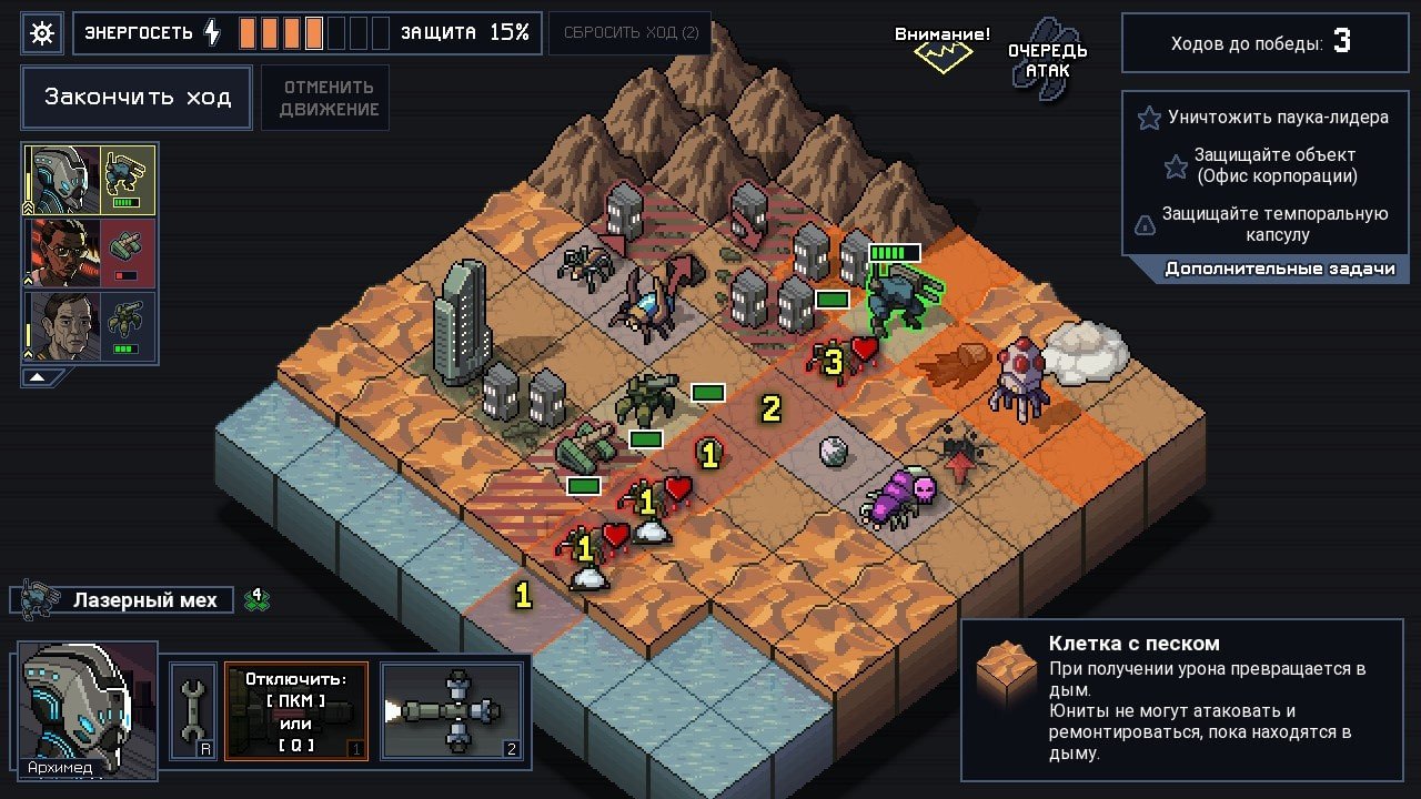 - 保卫城市:你的机甲需要从民用建筑中获取能量。保护它们免受“ Vek”生物的攻击,并且不要随意开火!