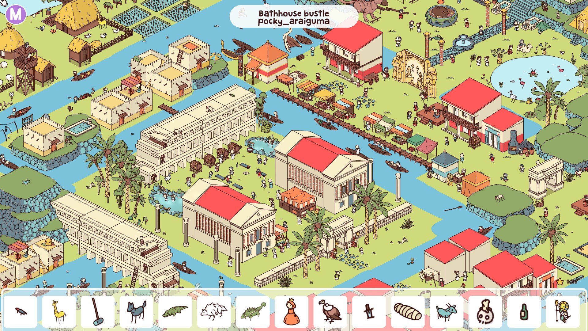 从高处俯瞰整个区域,点击例如“房屋”,即可“扫描”它,看看里面有什么。由于物品可能藏在建筑物里,这一操作对你来说至关重要!每一关任务都会变得更难,周围的元素也会越来越多。你甚至会遇到这样的情况:地图上有数十个角色围着篝火奔跑,许多动物四处移动,还有其他次要物体。在这种混乱中,你必须找到隐藏的物品,才能解锁下一个关卡。