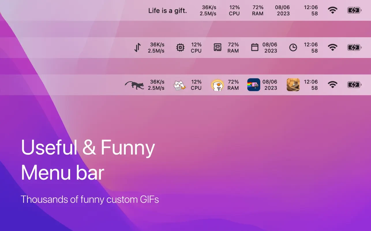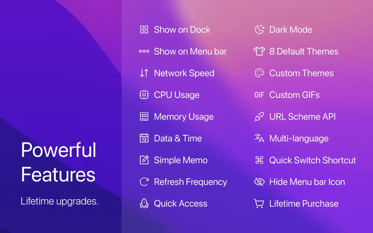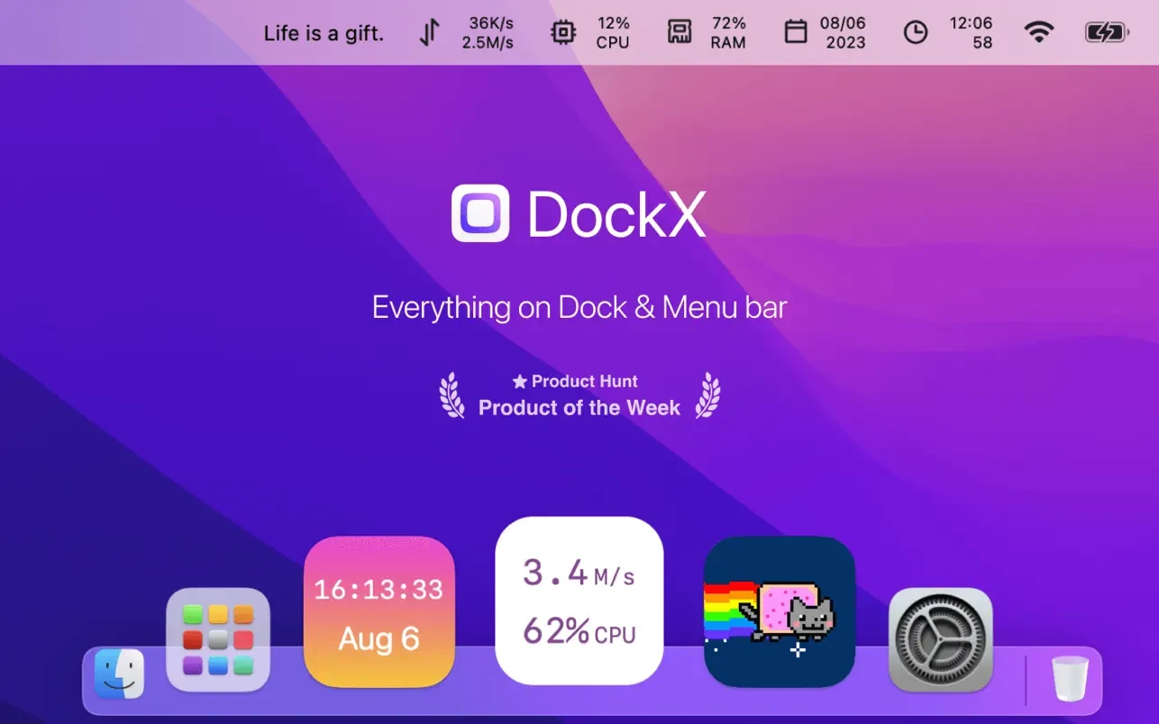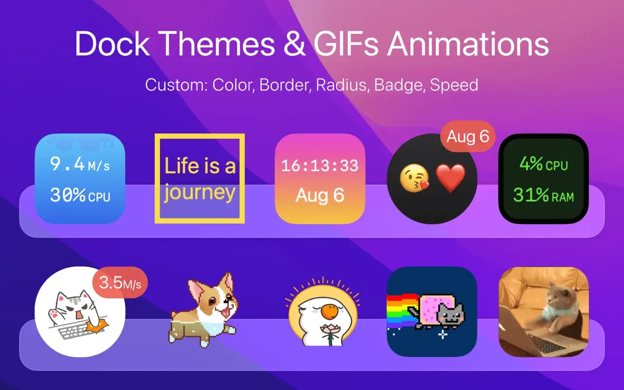 无论您是想实时追踪网络速度(上传/下载)、CPU/内存使用情况、带有秒针的日期和时间,还是想在提醒事项中显示醒目的红色角标,甚至是展示有趣的动态 GIF,DockX 都能轻松实现。