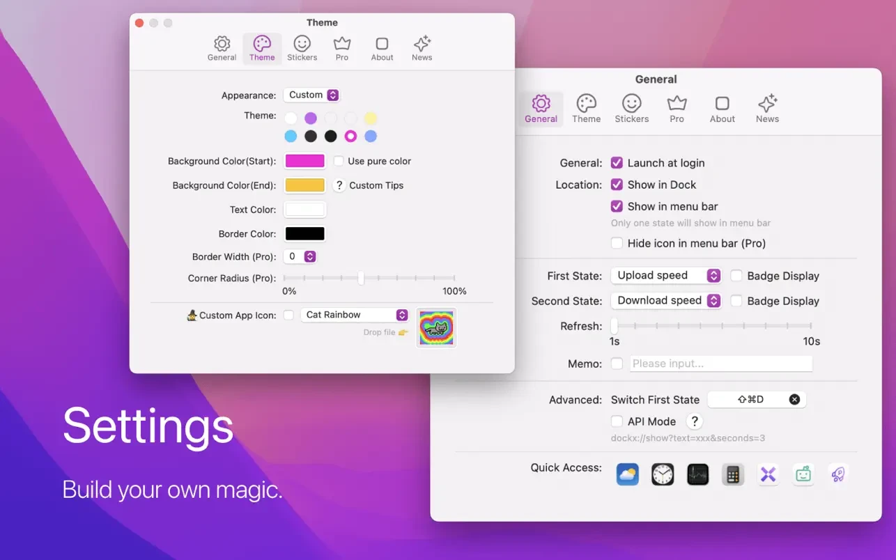 DockX 是一款功能强大的应用,它能让您在 Dock 栏和菜单栏上直接显示各种内容,方便您随时一瞥,而无需打开任何应用。