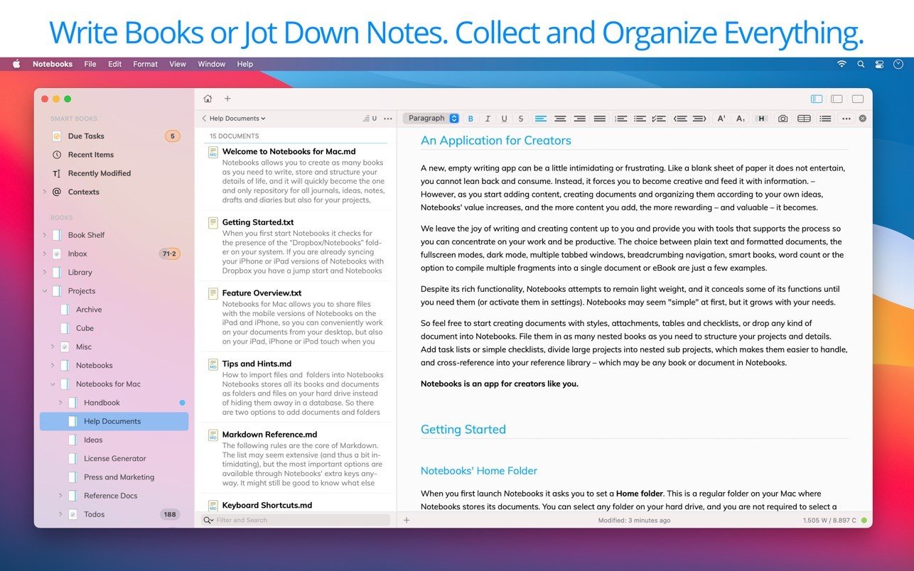 该应用程序可以与 iPad 和 iPhone 上的移动版 Notebooks 共享文件,让您不仅可以在桌面设备上,也能方便地处理文档。