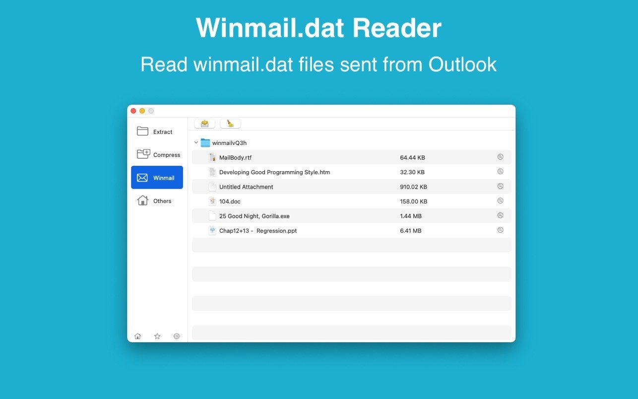 - 可预览和打开由 Microsoft Outlook 发送的 winmail.dat 文件。