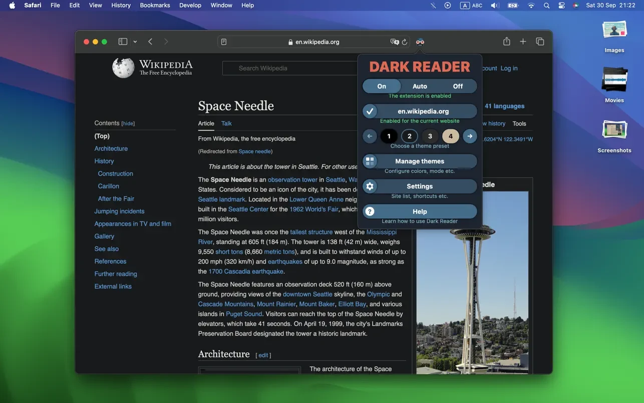 在安装前,请禁用类似的扩展。在 Safari 设置中启用 Dark Reader。祝您浏览愉快!
