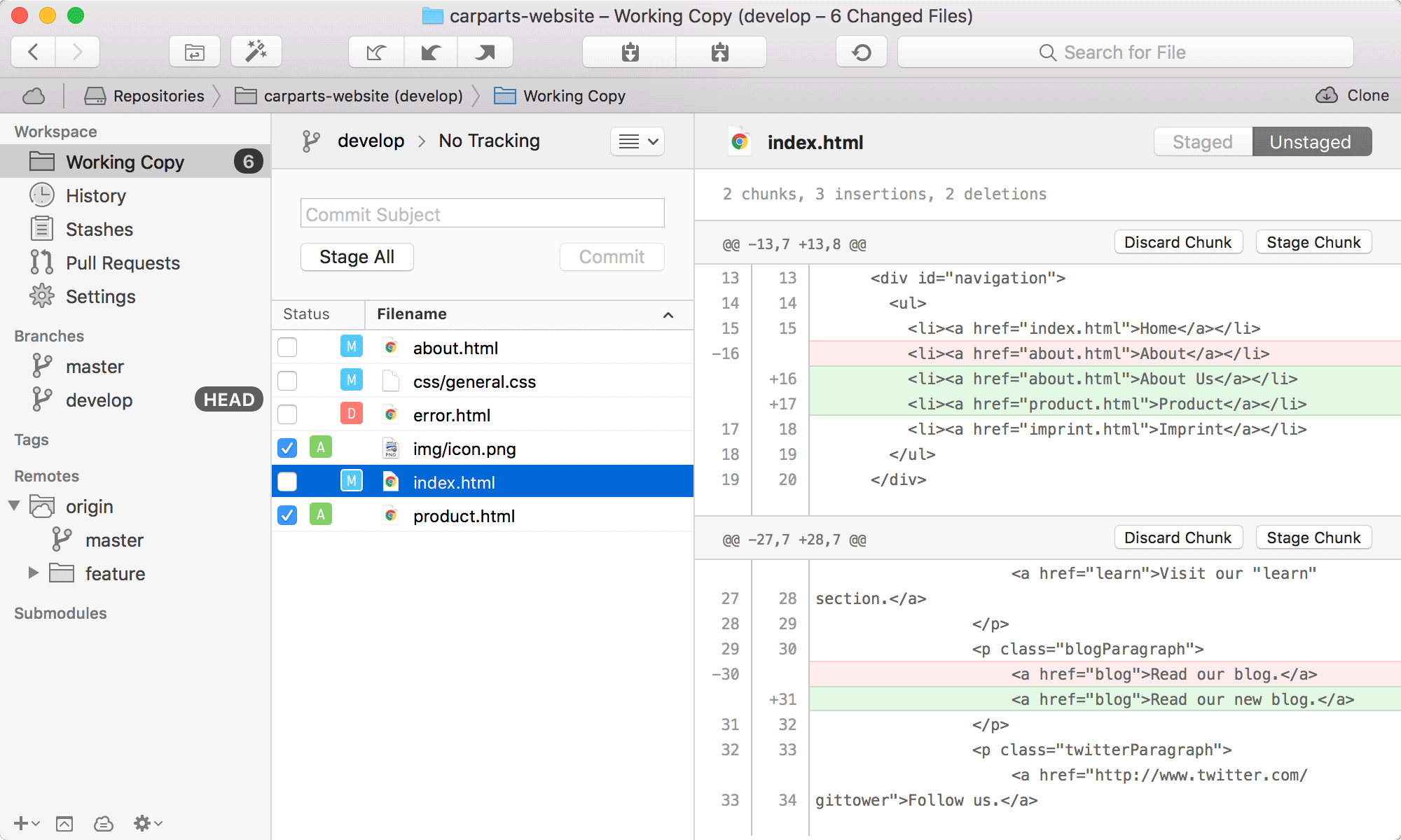 Tower 将复杂的 Git 操作抽象为易用的界面。例如,许多任务只需通过简单的拖放即可完成,并且可以轻松撤销错误。对于高级用户,它提供了单行暂存、子模块支持或文件历史记录等功能,可进一步提升他们的工作效率。