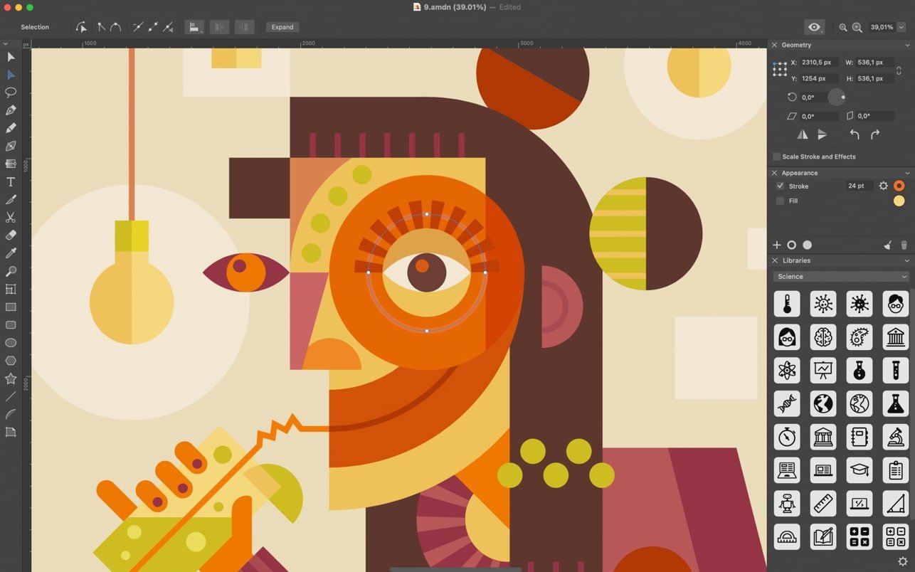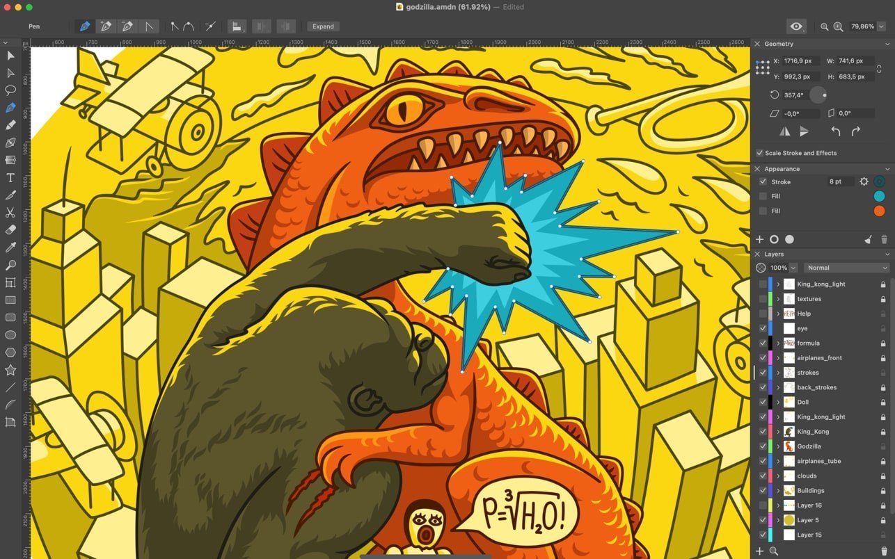 Amadine 是一款易于上手的绘图和矢量插画软件,但功能足以胜任专业工作。它适用于创作插画、Logo、图标、界面原型等多种设计。此外,Amadine 还提供支持 Apple Pencil 的 iPad 和 iPhone 移动版。