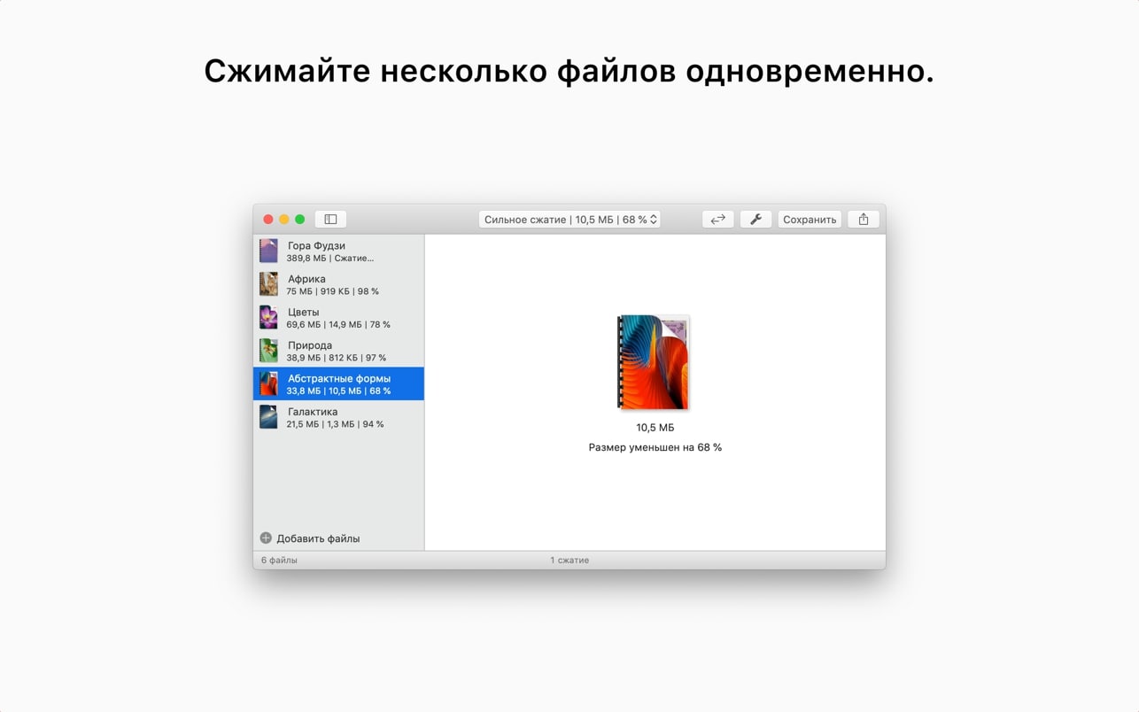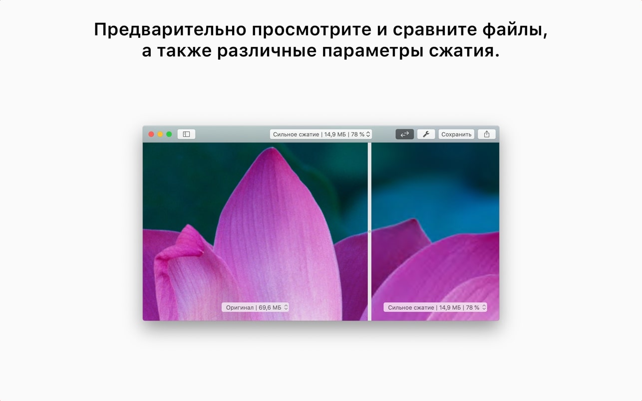 应用没有多余的设置或按钮,一切都简单明了,因为你唯一需要的只是减小文件大小。打开应用后,你会看到一个“将您的文件拖到此处”的区域,仅此而已。只需拖放文件,压缩它,然后保存回你的 Mac。