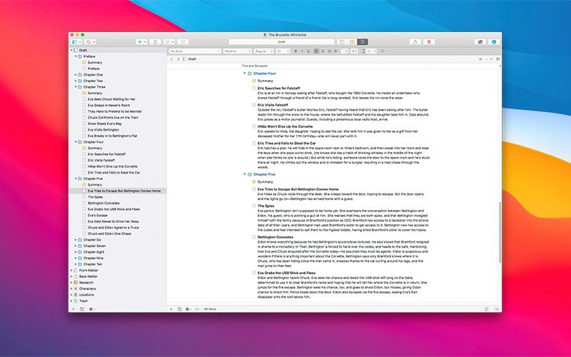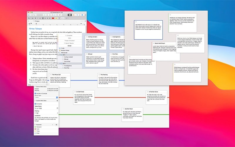 Scrivener 是一款结合了文字处理和项目管理功能的工具,专为需要处理大量文本的用户设计。它将文本编辑器的能力与组织管理和项目控制的特性融为一体。