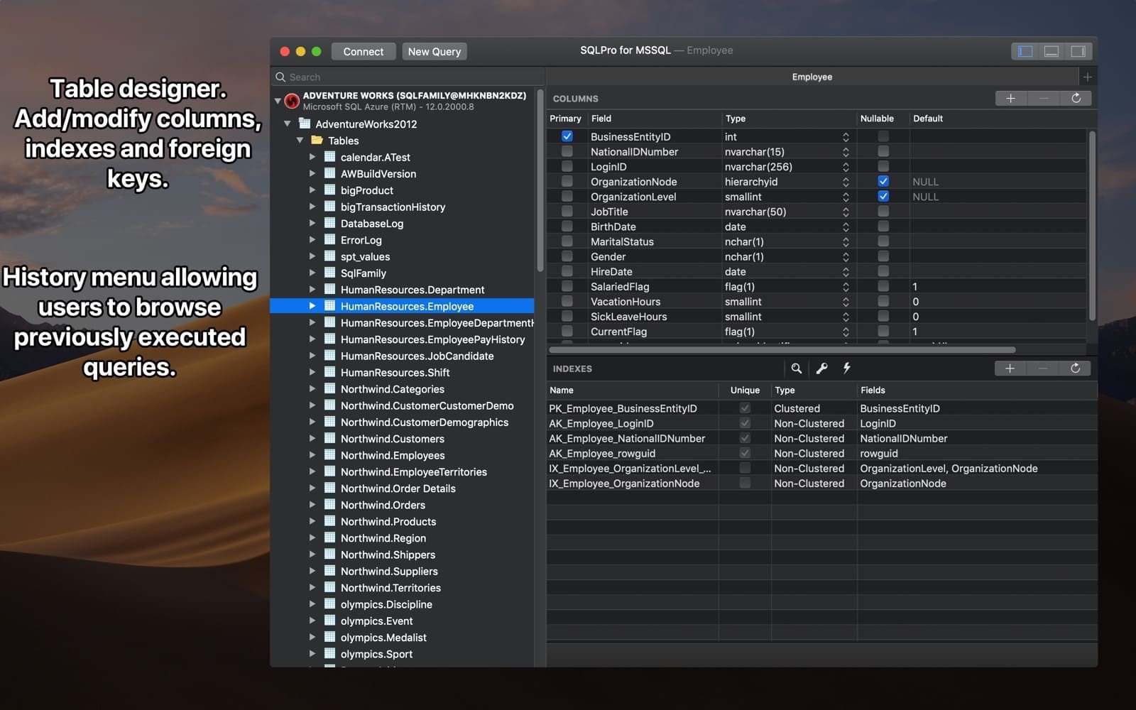 SQLPro for MSSQL是一款轻量级的微软SQL Server数据库客户端,提供快速、简便的方式来访问MSSQL服务器,包括通过SQL Azure或Amazon RDS等云服务。