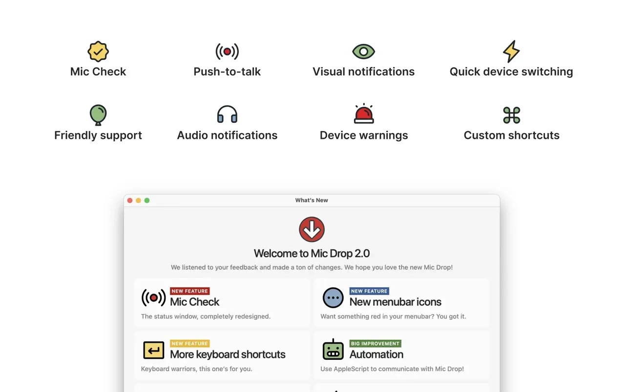 • 尊重您的隐私。Mic Drop绝不会录音,也无需麦克风权限。